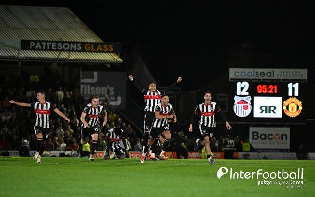 그림즈비는 지난달 28일 영국 링커션주 클리소프스에 위치한 블런델 파크에서 열린 2025-26시즌 EFL컵 2라운드에서 맨유를 만나 2-2 무승부 후 승부차기 끝에 12-11로 승리했다.