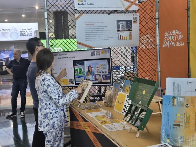 전시회장에서는 참관객들이 직접 제품과 서비스를 체험할 수 있는 기회가 마련됐다. 태국의 테이스티드 베터가 개발한 저당지수 밀가루, 프랑스의 비밸런스(BBalance) 스마트 헬스케어 매트, 대만의 바이온(Bion) AI 기반 음식 알레르기 센서, 스페인의 디지털 휴먼(Digital Human) AI 메타휴먼 솔루션 등 4개사의 혁신 제품들이 선보였다.