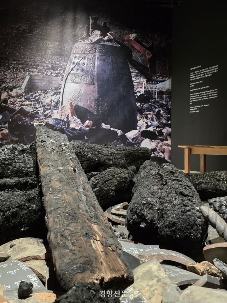 홍림회가 청주공예비엔날레 행사장에 전시한 경북 의성 고운사의 잔해. 이삭 기자.
