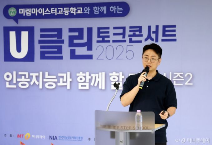 허상우 네이버 AI 리스크 매니지먼트 센터 PL이 3일 서울 관악구 미림마이스터고등학교에서 머니투데이와 한국지능정보사회진흥원 공동주최로 열린 'U클린 토크콘서트 2025'에서 강연하고 있다. /사진=이기범 기자 leekb@ |