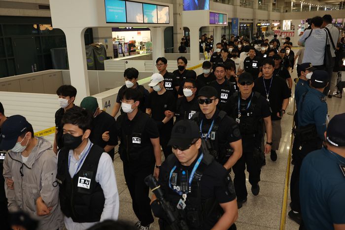대규모 송환을 위해 경찰은 약 4개월간 국내외 관계기관과 협력했다. 작전에 참여한 국내 기관만 해도 외교부, 국토교통부, 인천공항공사, 법무부 인천공항출입국·외국인청 등 10여 곳이 함께했다. 이날 오후 인천국제공항을 통해 입국한 송환자들은 대테러기동대 등 경비 경찰력 100여 명이 배치된 삼엄한 감시 속에서 호송 차량에 올랐다.
