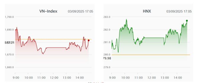 [방콕=뉴스핌] 홍우리 특파원 = 3일 베트남 증시는 혼조세를 보였다. 호치민 VN지수는 0.05% 내린 1681.30, 하노이 HNX지수는 0.97% 오른 282.70포인트로 거래를 마쳤다.