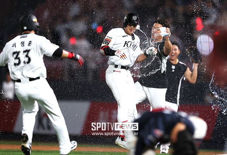 분위기는 그렇게 KT 쪽으로 흐르고 있었다. 롯데는 9회말 마무리투수 김원중을 마운드에 올렸지만 김원중은 안치영과 허경민에게 연속 안타를 맞고 흔들리기 시작했다.