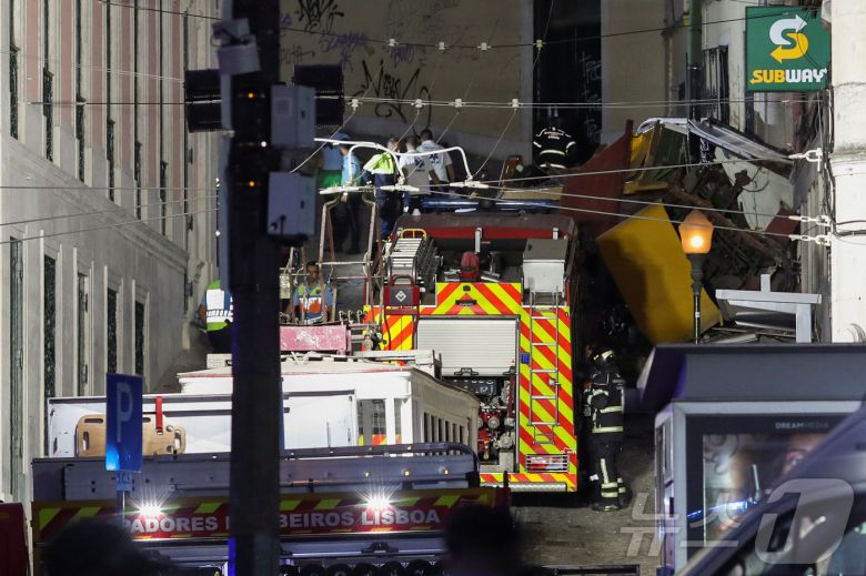(서울=뉴스1) 김지완 기자 = 포르투갈 리스본에서 3일(현지시간) 현지 주민과 관광객이 많이 이용하는 전차가 탈선하는 사고가 발생해 최소 15명이 사망했다.