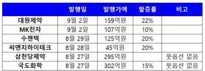 같은 맥락에서 EB 발행를 발행할 때 조기 상환을 요구할 수 있는 풋옵션을 설정하지 않은 경우도 있다. 지난달 27일 삼천당제약과 국도화학은 각각 295억4200만원, 301억8400만원어치 EB를 발행하면서 옵션을 설정하지 않았다. EB 만기는 삼천당제약 2029년 9월 19일, 국도화학 2030년 9월 3일이다. 투자자들이 각각 4년, 5년동안 상환을 청구할 수 없다는 얘기다.