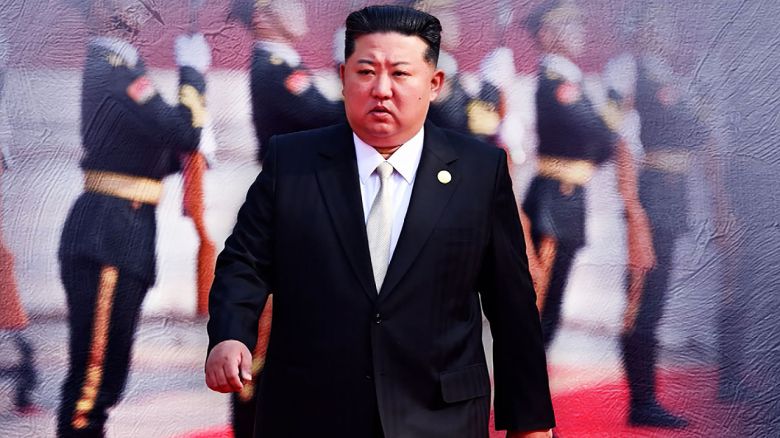 전용차량에서 내린 김정은 북한 국무위원장이 레드카펫이 깔린 길을 따라 무표정하게 걸어갑니다.