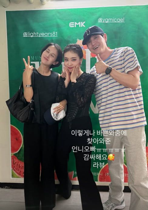 김히어라는 지난 3일 자신의 인스타그램 스토리에 "이렇게나 바쁜 와중에 찾아와준 언니 오빠ㅠㅠ 감싸해요. 라뷰"라는 문구와 함께 한 장의 사진을 게재했다.