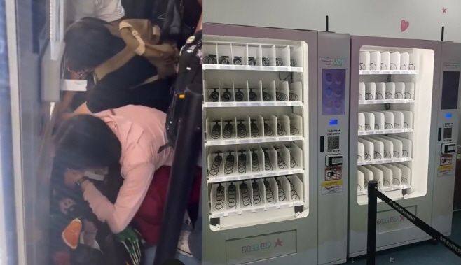 영상을 올린 누리꾼은 "이 매장은 사전 예약제인데, 저녁 8시 이후엔 직원도 없고 갯수 제한도 없다. 그 틈에 업자들이 한 칸을 통째로 가져갔다"고 밝혔다. 현장에 있던 다른 누리꾼이 찍은 텅 빈 자판기 사진도 올라왔다.