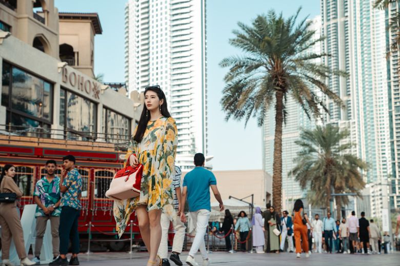 한편, 두바이의 거리에서 포착된 가영은 세상 화려한 스타일로 눈길을 사로잡는다. 어디서든 눈에 띌 만한 대담한 꽃무늬 패턴과 색감은 가영의 비주얼을 더욱더 빛나게 한다. 감정이 없기에 사람들의 시선에도 신경 쓰지 않는 그는 우아하고 꼿꼿한 자세로 유유히 걸음을 옮긴다. 단 한 컷만으로도 예사롭지 않은 분위기를 풍기는 지니와 가영. 이들이 어떤 이야기를 쌓아 나갈지 벌써부터 기대를 자극한다.