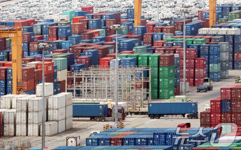 26일 경기 평택시 포승읍 평택항에 수출용 컨테이너들이 쌓여있는 모습. (자료사진) /뉴스1 ⓒ News1 김영운 기자 |