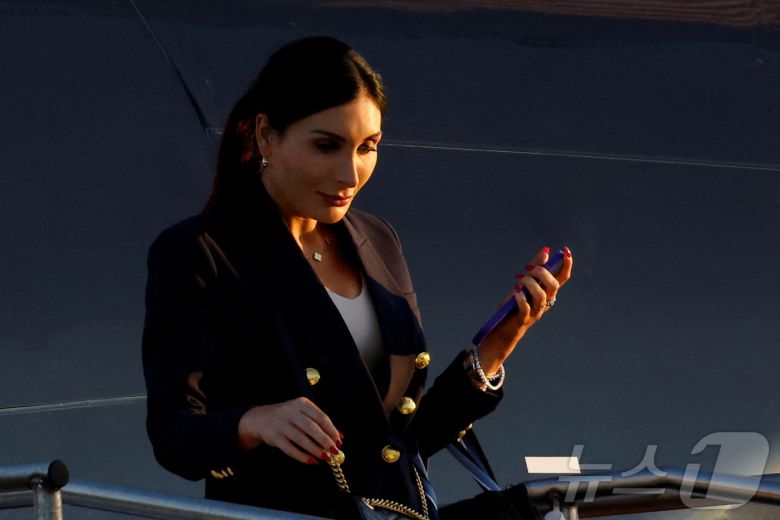 '극우 인플루언서' 로라 루머가 2024년 9월 10일(현지시간) 당시 공화당 대통령 후보이던 도널드 트럼프 미국 대통령과 민주당 대통령 후보이던 카멀라 해리스 부통령 간의 토론에 앞서 펜실베이니아주 필라델피아에 도착한 모습. 2024.09.10. ⓒ 로이터=뉴스1 ⓒ News1 윤다정 기자