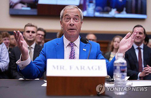 (런던=연합뉴스) 김지연 특파원 = 영국에서 지지율 1위를 달리는 우익 포퓰리즘 정당 영국개혁당의 나이절 패라지 대표가 미국 의회에서 영국의 '권위주의화'를 비판했다고 일간 더타임스가 3일(현지시간) 보도했다.