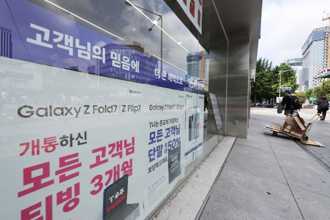 지난달 28일 서울 시내의 한 SKT 직영점. 연합뉴스 |