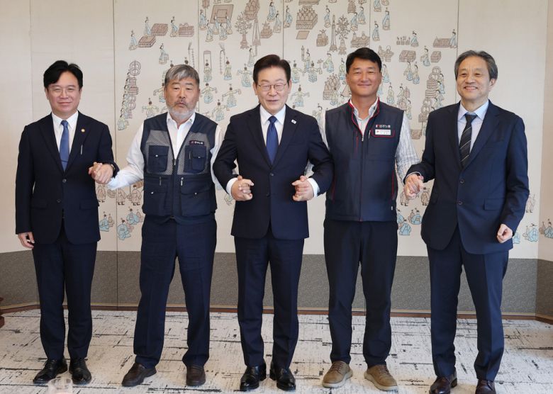 이재명 대통령이 4일 양대 노총 위원장들에게 “우리 사회의 제일 큰 과제가 포용과 통합인데, 노동자와 사용자 측이 대화해야 하지 않겠느냐”며 “싸우는 것도 만나서 해야 한다”고 말했다. 대통령 소속 기구인 경제사회노동위원회(경사노위) 참여를 요청한 것이다.