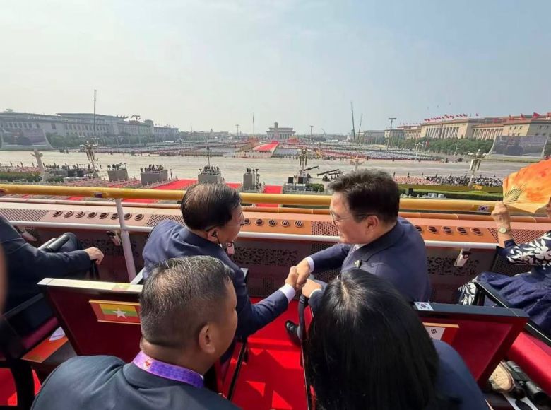 지난 3일 중국 베이징 전승절 열병식 때 천안문 망루에 앉은 우원식 국회의장이 왼쪽 인사와 악수하는 장면이 외신에 포착됐다. 미얀마 대통령 권한대행인 민 아웅 흘라잉(69) 군부 최고 사령관이었다. 2021년 미얀마 쿠데타와 시민 저항 유혈 진압, 이슬람계 소수민족 로힝야족 탄압으로 ‘독재자’ ‘학살자’라는 국제적 지탄을 받는 인물이다. 이 때문에 국내 진보 진영 일각에서는 국회의장의 악수가 부적절했다는 지적이 나왔다.