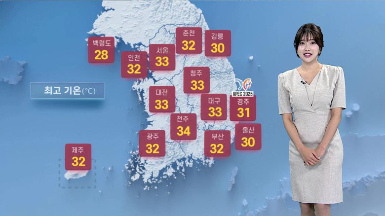 한낮에는 서울과 대구 33도, 전주 34도겠고, 수원과 창원 32도까지 오르겠습니다.