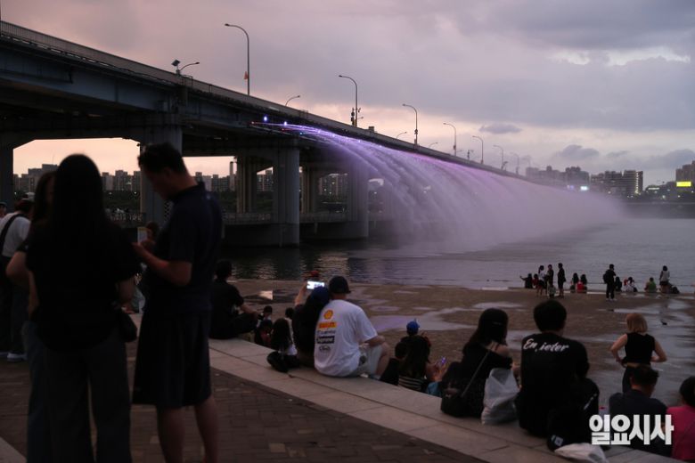 서울 서초구 반포한강공원에서 시민들이 달빛 무지개분수 공연을 감상하며 더위를 식히고 있다. ⓒ<일요시사> DB |