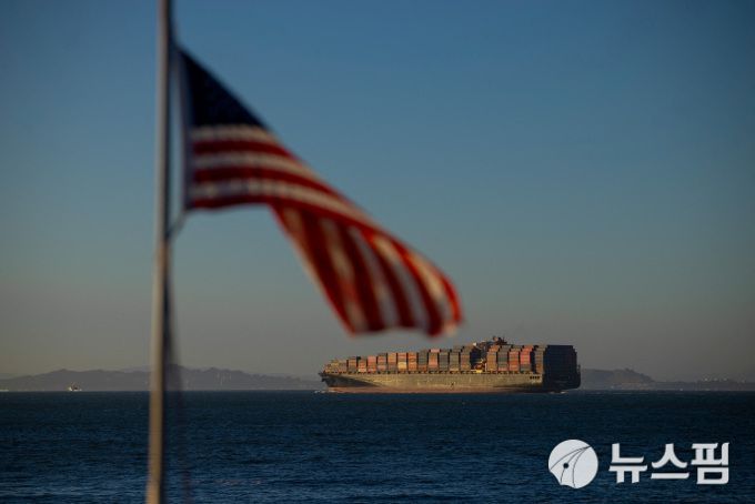 2025년 8월 4일, 미국 캘리포니아 샌프란시스코만 오클랜드 항구에서 컨테이너를 가득 실은 화물선 한 척이 출항하고 있다[사진=로이터 뉴스핌] |