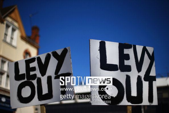 홈구장인 토트넘홋스퍼스타디움 관중석엔 '레비 아웃' 손팻말이 넘실댔다.