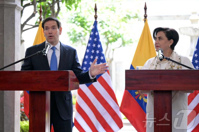 마코 루비오 미국 국무장관(왼쪽)과 가브리엘라 좀머펠트 에콰도르 외무장관이 4일(현지시간) 키토 카론델레 대통령궁에서 공동 기자회견을 하고 있다. ⓒ AFP=뉴스1 |
