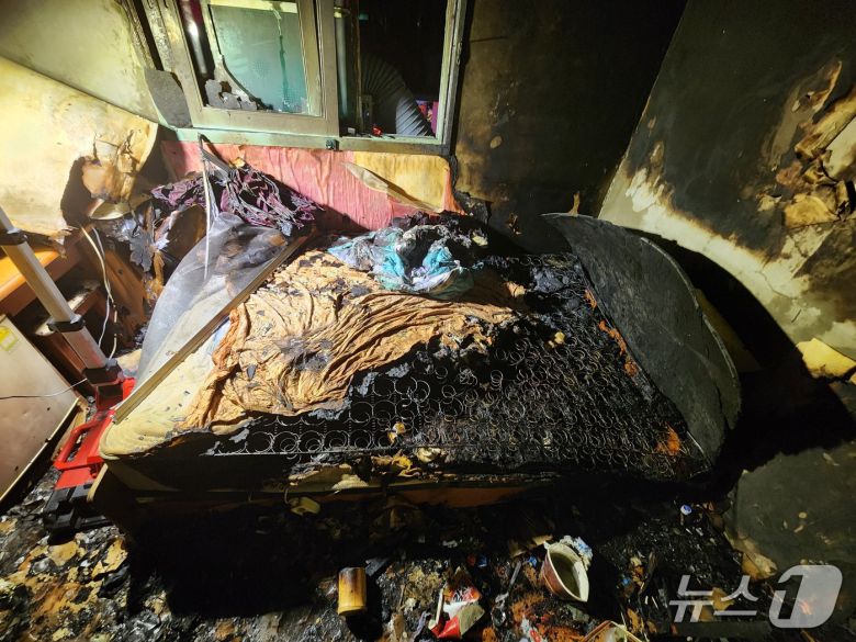 5일 오전 부산 북구의 한 여관 객실에서 불이 나 내부가 검게 타 있다. (부산소방재난본부 제공. 재판매 및 DB 금지) |