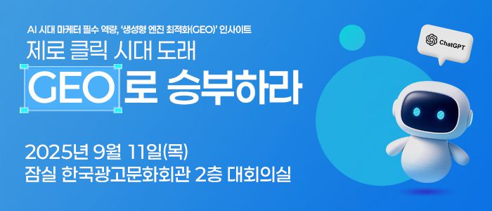 이 행사에서는 박세용 리스닝마인드 대표와 오석종 콩벤처스 이사가 GEO 시대 마케터의 전략적 대응, 성공사례로 보는 GEO 실무 전략에 대한 발표도 이어진다. 세미나에 관한 자세한 정보는 행사 홈페이지(https://conference.etnews.com/conf_info.html?uid=429)에서 확인할 수 있다.