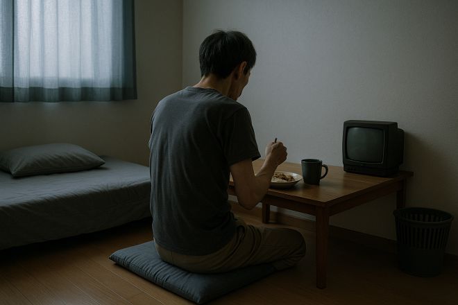 홀로 밥을 먹는 중년 남성의 모습을 그린 AI이미지. 서울신문 DB |