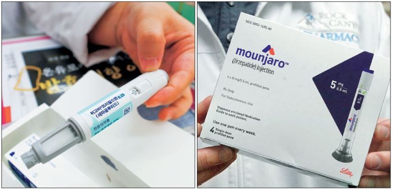 비만치료제 개발의 여파가 식생활, 술, 패션, 레저 산업까지 이르고 있다. 때문에 시장이 초기 단계임에도 이들 업계는 유불리 계산에 분주하다. 사진은 비만치료제 ‘위고비(왼쪽)’와 ‘마운자로’ [연합·로이터] |