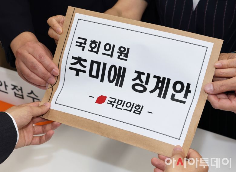 아시아투데이 이병화 기자 = 조승환(왼쪽부터) , 서명옥 국민의힘 원내부대표, 최은석 원내수석대변인이 5일 국회 의안과에 국회의원 추미애 징계요구안을 제출하고 있다. ⓒ "젊은 파워, 모바일 넘버원 아시아투데이"이 기사의 카테고리는 언론사의 분류를 따릅니다.0공유하기