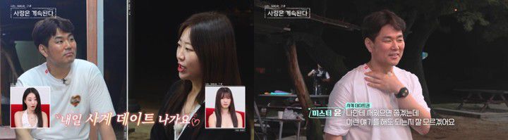 같은 시각, 11기 영숙은 미스터 윤을 찾아가 "내일 저랑 나가자"고 '사계 데이트' 신청을 했다. 이에 미스터 윤은 고마워하면서도 25기 옥순에게 가서 상황 설명을 했다. 그는 "11기 영숙님이 방금 제게 '사계 데이트권'을 썼다. 그런데 우리가 밖에서 데이트를 안 해 봤으니, (25기 옥순님이 딴) '사계 데이트권'을 저한테 써주면 좋겠는데"라고 말했다.