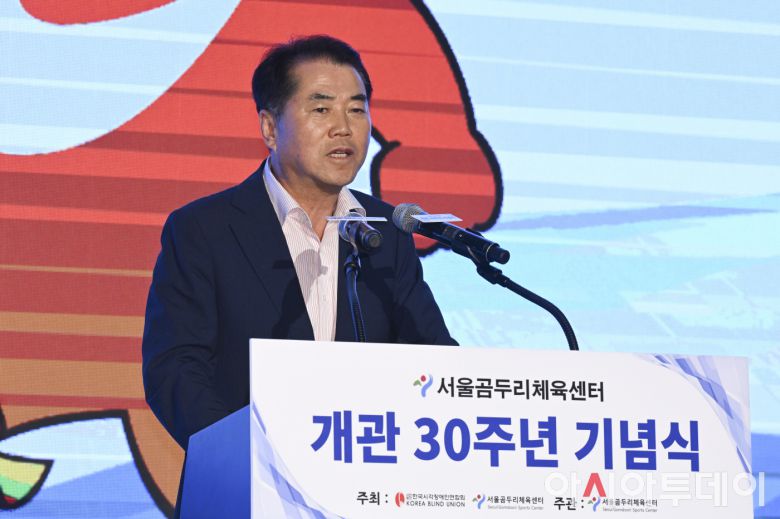 황석순 아시아투데이 총괄사장이 5일 서울 송파구 서울올림픽파크텔에서 열린 서울곰두리체육센터 개관 30주년 기념식에 참석해 축사를 하고 있다. /정재훈 기자 ⓒ "젊은 파워, 모바일 넘버원 아시아투데이"이 기사의 카테고리는 언론사의 분류를 따릅니다.0공유하기