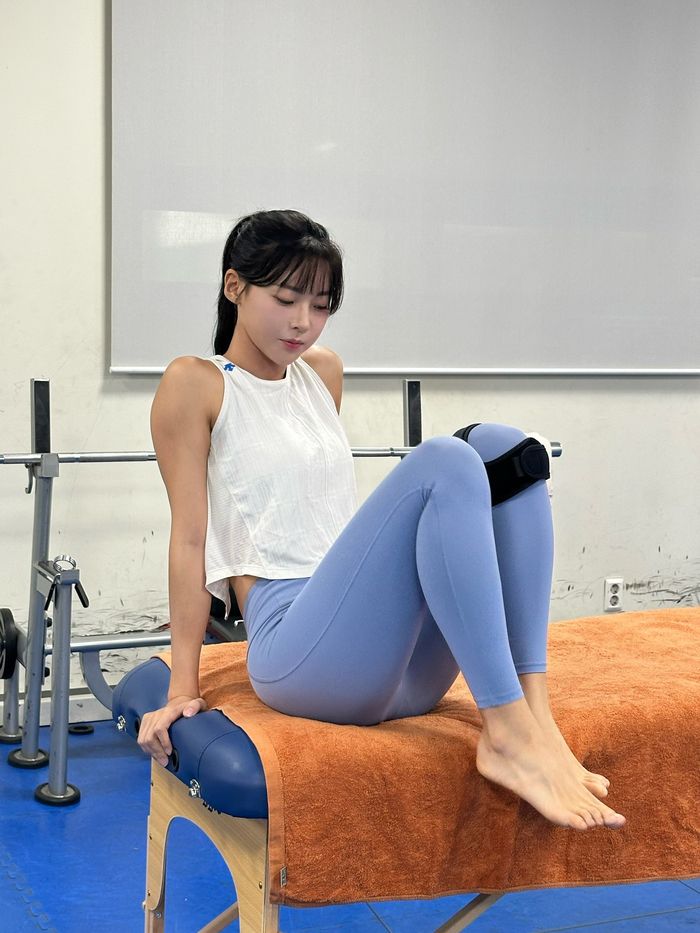 사진 속 김민지는 운동복 차림으로 밝고 건강한 모습이다. 김민지는 하얀 민소매 티셔츠와 파스텔 컬러의 레깅스를 착용하고 스트레칭과 운동에 집중하는 모습을 보였다. 군더더기 없는 탄탄한 몸매와 긴 팔다리가 돋보이며, 프로 운동선수다운 존재감을 드러낸다.