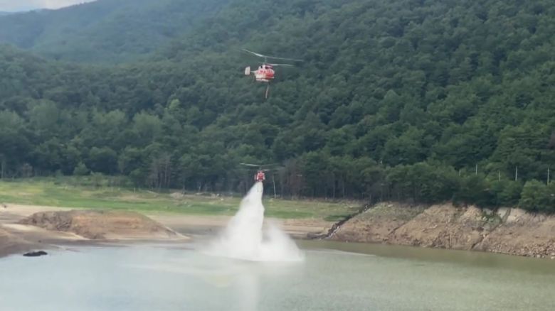 산림청 헬기 5대와 육군 시누크 헬기 5대 등 모두 10대의 헬기를 동원해 인근 저수지에서 물을 길어와 오봉저수지에 쏟아붓고 있습니다.