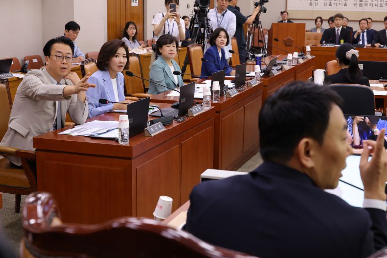 국민의힘 의원들은 이날 청문회가 시작되자 “민주당이 청문회를 빙자해 재판·수사에 영향을 미치려 한다”고 주장하며 퇴장했다. 나경원 국민의힘 의원은 “관봉권 띠지 사건은 현재 감찰 중이고, 여론 조작 사건도 특검 수사 대상”이라며 “국회가 재판도 하고 수사도 하겠다는 것이냐”고 말했다.