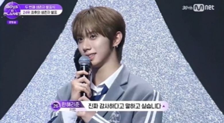 그러나 이어진 2차 생존자 발표식에서 한해리준은 아쉽게 26위로 최종 탈락의 고배를 마셨다. 한해리준은 "'like JENNIE' 팀 덕분에 너무 예쁘고 멋있고 좋은 무대를 만들 수 있어서 진짜 감사하다고 말하고 싶다. 'like JENNIE' 팀 사랑한다"라며 담담하게 마지막 소감을 밝히며 프로그램에 대한 애정과 감사를 표했다.