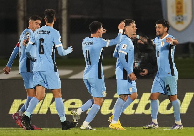 우루과이는 5일(한국시간) 우루과이 몬테비데오 에스타디오 센테나리오에서 열린 북중미 월드컵 남미예선 17차전 안방 경기에서 페루를 3-0으로 이겼다. 2010 남아프리카공화국 대회부터 5회 연속이자 통산 15번째 월드컵 본선 무대 도전이다. 우루과이는 1930년 자국이 개최한 첫 대회와 1950년 브라질 대회에서 우승한 바 있다.