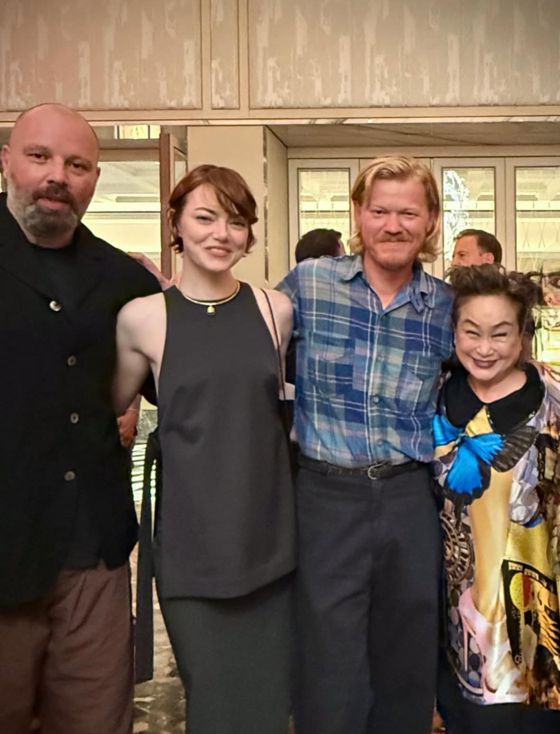 5일 할리우드 영화 '부고니아' 제작에 참여한 관계자 SNS에는 CJ 그룹 이미경 부회장과 '부고니아' 요르고스 란티모스 감독, 그리고 주연 배우 엠마스톤, 제시 플레먼스의 다정한 단체 사진이 올라 눈길을 끌었다. 사진 속 네 사람은 서로의 어깨와 허리를 끌어안고 행복한 미소를 짓고 있어 다양한 방식으로 글로벌 시장에서 존재감을 내비치고 있는 K-시네마의 힘을 새삼 확인시킨다.