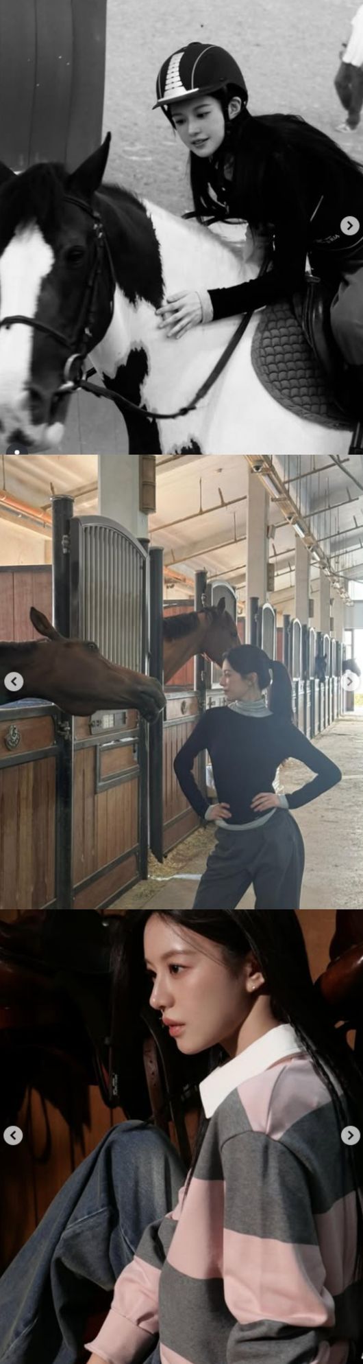 사진 속 고윤정은 자신이 모델로 하고 있는 의류 브랜드 화보 촬영에 임하고 있는 모습이 담겼다. 마사에서 말들과 함께 교감을 나누거나 말 위에 올라타 포즈를 취했다.