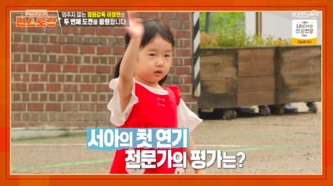 서아는 “나 엄마처럼 할래”라며 짧은 대사 ‘언니 잘가’를 했다. 이정현이 “아빠가 안 놀아주면 슬프지. 그거 생각하면서 ‘언니 잘가’ 해야 된다”고 조언하자 서아는 시무룩한 표정을 지어 패널들의 웃음을 짓게 했다.