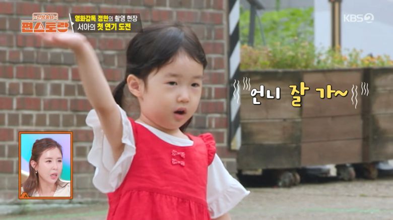 한 줄 대사까지 받은 서아는 "언니 잘 가"를 완벽하게 외워 눈길을 끌었다. 이정현은 "서아도 연기 해야해. 슬펐을 때 일을 생각해라. 아빠가 안 놀아주면 슬프지?"라며 감정 몰입까지 교육했다.