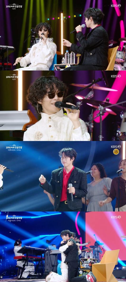 뒤이어 이찬혁은 십센치의 또다른 히트곡 '안아줘요'를 자신만의 색깔로 편곡했다. 그는 "정말 섹시한 분이다. 한번에 안아주지 않는다. 줘요, 주세요, 안아달라고. 이 바이브가 너무 좋다"라며 웃었고, 무대를 누비며 제목처럼 자유롭게 포옹했다. 이에 권정열과 서로를 마주보고 무릎을 꿇고 앉아 포옹으로 무대를 마무리 한 바. 권정열은 "이런 무대 처음 해봤다"라며 얼떨떨해 하면서도 퍼포먼스에 응해 환호를 자아냈다.