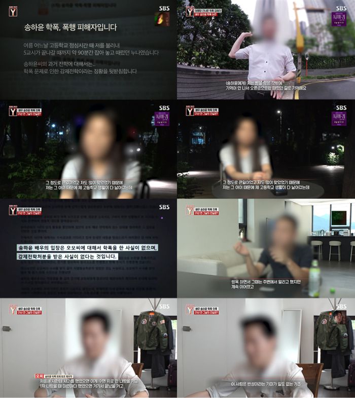 5일 방송된 SBS ‘궁금한 이야기 Y’에서는 송하윤의 21년 전 학교 폭력 의혹이 다뤄졌다.