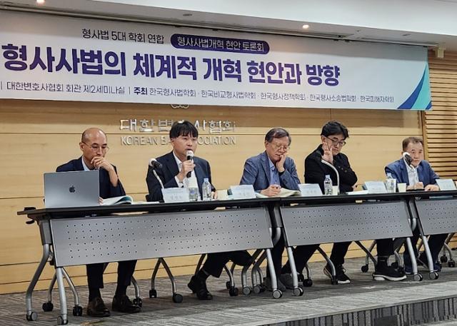 형사법 5대 학회(한국형사법학회, 한국비교형사법학회, 한국형사정책학회, 한국형사소송법학회, 한국피해자학회) 연합은 이날 오후 서울 서초구 대한변호사협회 회관에서 '형사사법개혁 현안 토론회'를 개최했다. 단상에 오른 학자들은 중수청의 행안부 설치에 최근 총의를 모은 민주당 행보를 강하게 경계했다. 김봉수 전남대 로스쿨 교수는 "중수청, 국가수사본부, 고위공직자범죄수사처 등은 하나의 몸통에 붙어있는 팔다리"라며 "경찰의 권한 독점에 눈감는다면 또 다른 괴물을 보게 될 것"이라고 경고했다. 박성민 경상대 법대 교수도 해당안에 대해 "형식적 분점의 의미를 가질 뿐 오롯이 행정부의 실질적 독점의 성격을 가지게 될 것"이라고 내다봤다.