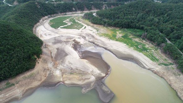 최악 가뭄으로 강원 강릉지역에 재난사태가 선포된 가운데 지난 1일 오후 강릉지역 생활용수의 87%를 공급하는 상수원 오봉저수지의 저수율이 14.5%까지 떨어져 맨바닥을 드러내고 있다.(사진=연합뉴스)
