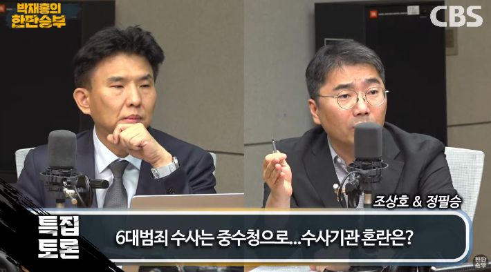 ◆ 조상호> 애초에 이 논의가 왜 나왔냐는 거예요. 중수청 논의가 왜 나왔느냐. 중대범죄수사청이 이른바 검찰 내에 이 논의가 목적이 아니라면 굳이 왜 중대범죄수사청을 만들어야 되냐까지 얘기가 나오는 거거든요. 그냥 수사 개시권을 폐지하면 되는 것이지 굳이 왜 이 중대범죄수사청이 나왔냐. 결국에는 아직까지 그 해당 분야 예를 들면 자본시장 범죄 그다음에 대형 조세 포탈 범죄 그다음에 중대재해 사건 범죄, 중대 노동 사건들인 거죠. 그다음에 공정거래 위반 사건 범죄 이런 화이트컬러 범죄들에 대해서 여태껏 우리나라 법률이 전부 다 피고발 기관을 검찰로 하는 바람에 검찰밖에 경험해 보지 못했던 역사가 있어요. 수십 년 동안. 그러다 보니까 경찰이 뭘 안 해서 그런다기보다 경험해 본 적이 없다는 거죠. 그런데 만약에 여기서 갑자기 사라지게 되면 이 중대 수사 역량이 갑자기 확 되고 그러면 결국에 중대 범죄 수사 역량에 공백이 생기는 거 아니냐는 논의부터 출발한 거잖아요. 그러면 결국에는 이 사건 수사를 경험해 본 이른바 검찰청 안에 있는 조직을 기소권과 영장 청구권으로부터 분리해내는 작업이 필요한 건데 그걸 분리해내기 위해서는 조직을 원활하게 분리해서 끌어내야 될 거 아닙니까?