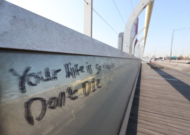 ▲지난해 우리나라에서 스스로 목숨을 끊은 사람이 2011년 이후 13년 만에 가장 많았던 것으로 나타났다. 사진은 27일 오후 서울 마포대교 난간에 자살 예방을 위한 메시지가 적혀져 있다. ⓒ연합뉴스 |
