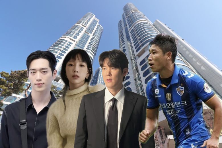 서울 성동구 성수동 ‘트리마제’와 트리마제를 보유하고 있는 것으로 알려진 배우 서강준(왼쪽부터), 그룹 소녀시대 태연, 전 수영선수 박태환, 전 축구선수 이근호. [네이버 부동산갤러리·각 유명인 공식 인스타그램 갈무리] |