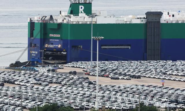 경기도 평택항에 수출용 자동차가 세워져 있는 모습. [사진=연합뉴스] |