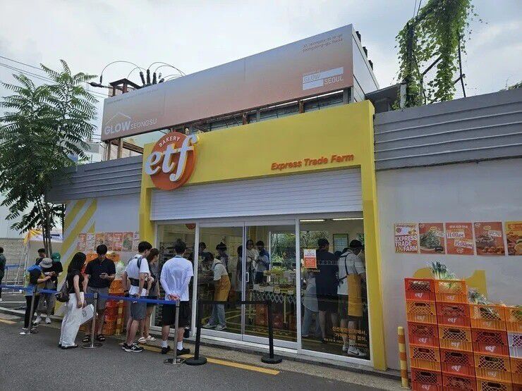 슈카월드는 지난달 30일 서울 성동구 성수동에서 공간 설계 업체 글로우서울과 함께 ‘이티에프(ETF) 베이커리’를 열었다. 소금빵을 990원, 식빵을 1990원, 치아바타를 3490원, 복숭아 케이크를 1만8900원 등 시중보다 낮은 가격에 내놓으며 개점 직후 큰 관심을 끌었다.