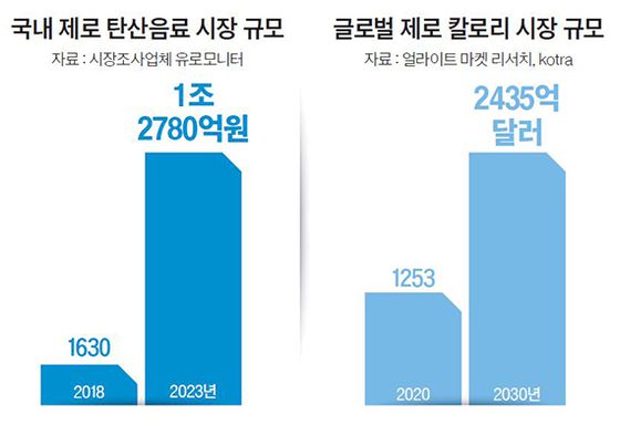 ‘콜라 사랑꾼’이란 별명을 가진 도널드 트럼프 미 대통령이 콜라 제조에 고과당 옥수수 시럽 대신에 사탕수수 설탕을 쓰도록 요구하면서 콜라와 같은 첨가당 음료가 논쟁이 되었다. 사실 전 세계적으로 가당 음료의 소비가 비만·당뇨·심혈관질환 등으로 인한 사망을 증가시키는 주범이라는 점은 잘 알려진 사실이다. 세계보건기구(WHO)는 가공식품을 통한 당류 섭취가 1일 총 에너지 섭취량의 10%(하루 50g)를 초과하지 않도록 권장한다. 콜라 500? 한 병만 마셔도 권장량을 초과한다. 건강을 위해서는 5% 미만(하루 25g)으로 제한할 것을 권장한다. 헬시 플레저(healthy pleasure)가 유행하면서 단맛을 즐기면서도 건강한 식품을 찾다 보니 가당 음료나 식품보다는 인공 감미료가 들어가 있는 ‘제로(zero)’ 음료나 식품이 유행이다. 그러나 제로(0)가 제로가 아니다. 설탕 대신 어김없이 감미료가 숨어있다. 인공 감미료는 설탕의 200~600배 단맛을 가지는 아세설팜칼륨·수크랄로스·아스파탐·사카린·스테비아 등이 대표적이다. 유로모니터에 따르면 국내 제로 음료 시장만 하더라도 2018년(1630억원)에 비해 2023년(1조2780억원) 7.8배 성장했다. 2025년 1월, 전체 탄산음료 시장에서 제로 제품이 차지하는 비중이 30%에 육박한다.